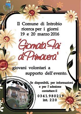 Il comune di Introbio ricerca volontari per le giornate FAI di primavera.