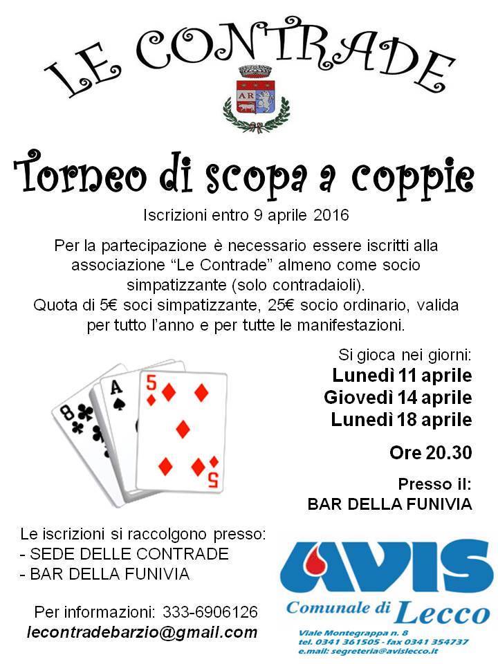 Torneo di scopa a coppie presso il bar della funivia. Iscrizioni entro il 9 aprile e necessaria iscrizione all'associazione "Le contrade".