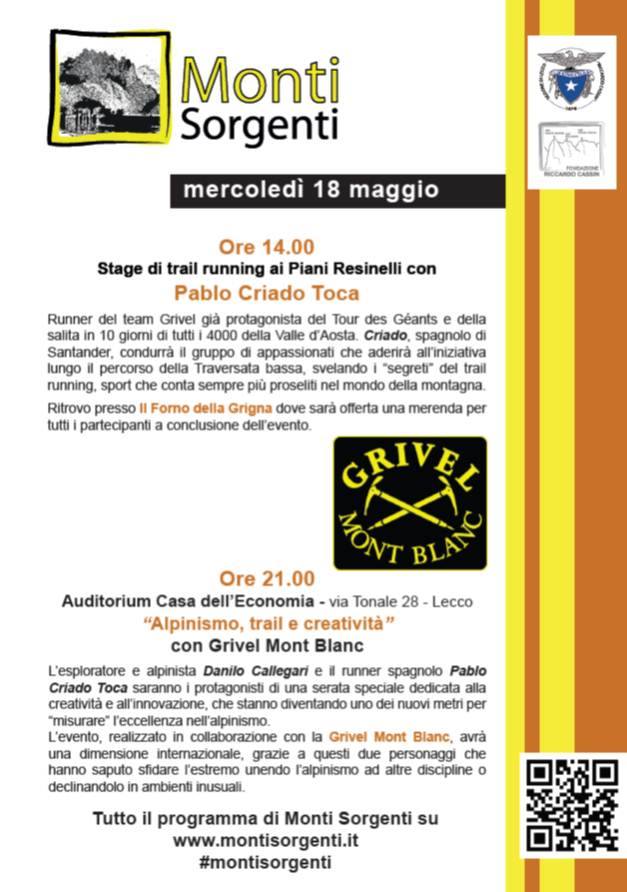 Monti sorgenti. Alle 15 stage di trail running ai Piani Resinelli con Pablo Criado Toca che condurr� il gruppo lungo il percorso della Traversata bassa. Ritrovo presso il Forno della Grigna.